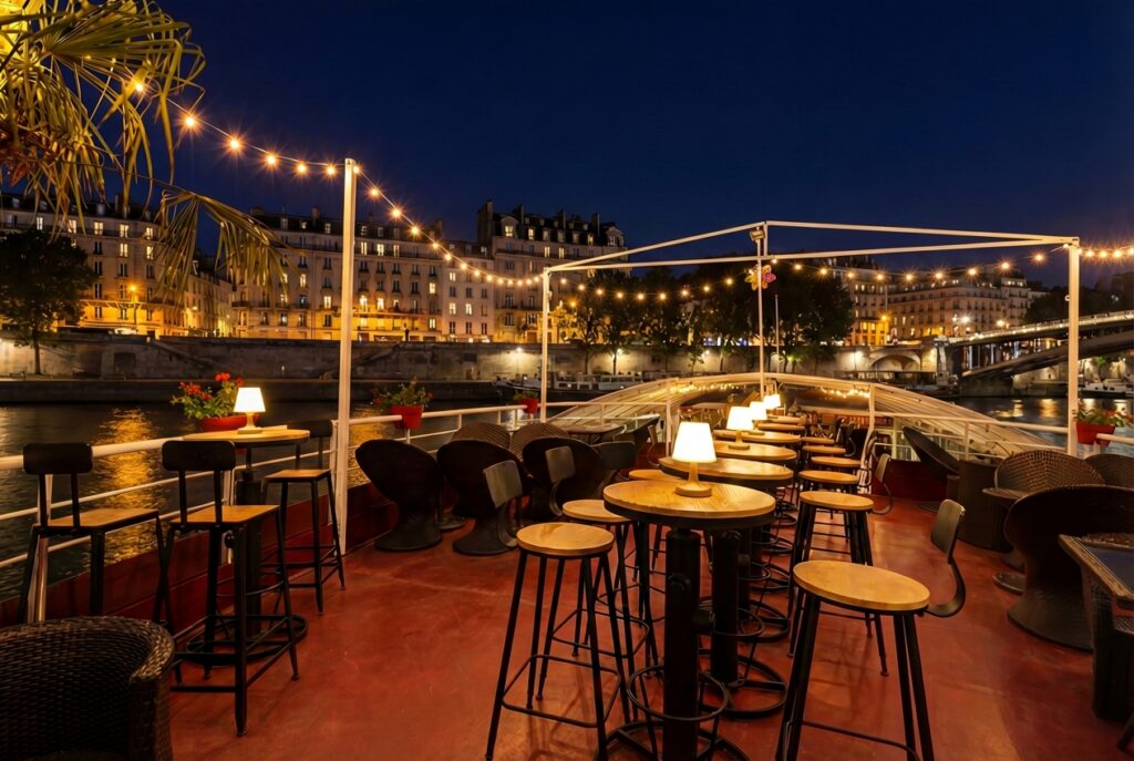 Le Nix Nox est un bateau amarré dans le 12ème arrondissement de Paris. Son décor cosy et spacieux a la faculté de s’adapter à  toutes typologies d’évènement. Ses deux terrasses qui représentent une superficie totale de 125m2 et sa salle climatisée de 250m2 peuvent accueillir environ 350 personnes.