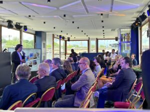 L’Escale Bleue, située au Port de Solférino sur le Quai Anatole France, est un lieu unique et raffiné pour organiser vos événements. Avec une superficie totale de 240 m², elle offre 120 m² d’espace intérieur et 120 m² de terrasse, pouvant accueillir jusqu’à 250 personnes en configuration cocktail.