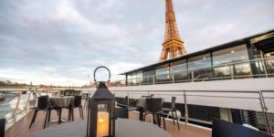 Sur le pont supérieur de la péniche se situe la terrasse sonorisable de 120 m² vous offrant une vue unique et inoubliable sur la capitale. Elle peut également être couverte et chauffée sur demande notamment en hiver.
