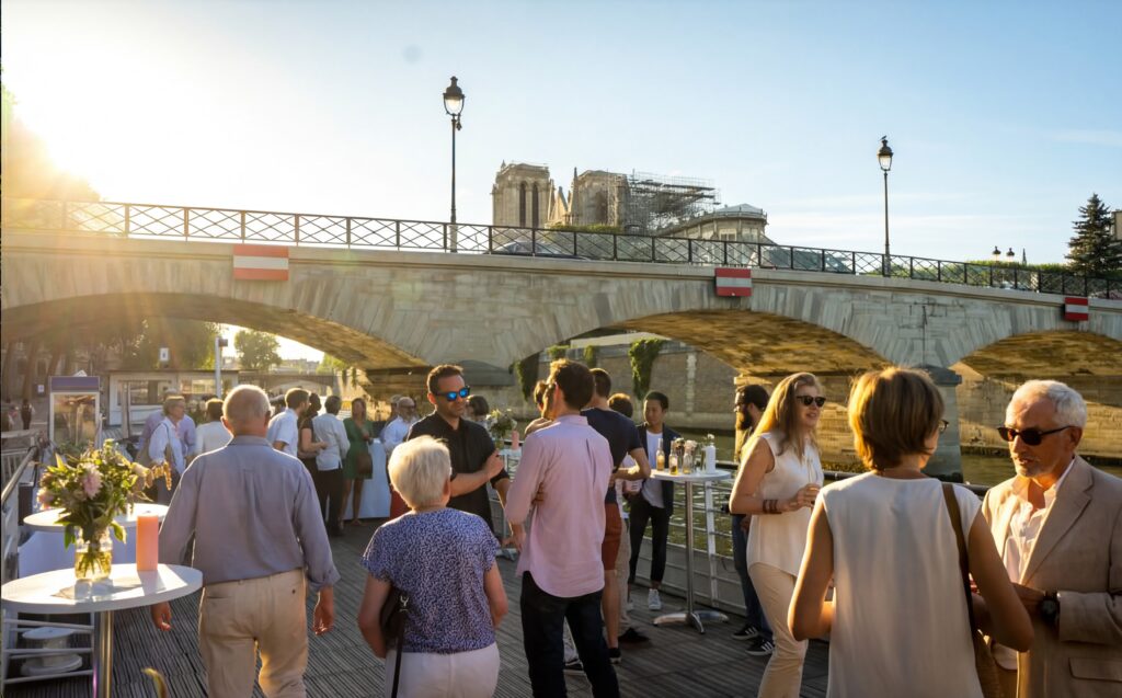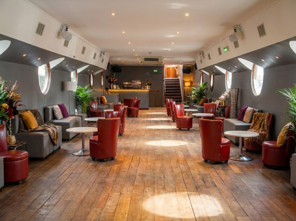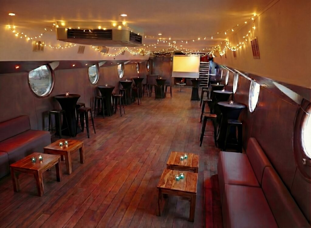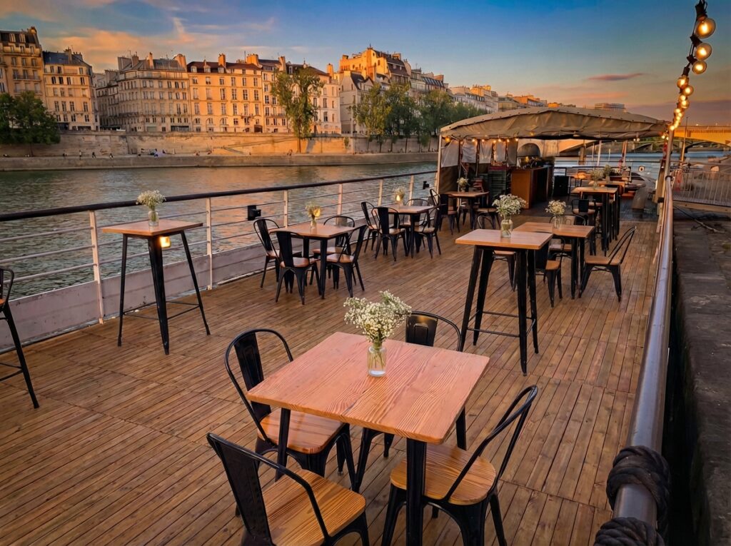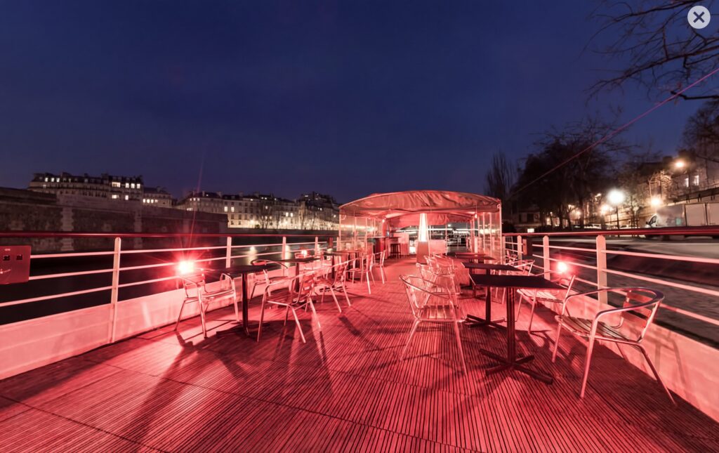 On vous accueille au coeur de Paris afin de rendre votre Ă©vĂ©nement mĂ©morable aux yeux de vos invitĂ©s. Vous aurez Ă disposition une salle de 120 m2 climatisĂ©e et une terrasse de mĂŞme dimension. D’une capacitĂ© de 150 personnes en formule cocktail, 100 personnes en confĂ©rence, 70 personnes en reaps assis. Vous pourrez trouver sur la pĂ©niche Henjo toutes les fonctionnalitĂ©s d’une salle de location, l’originalitĂ© en plus !!